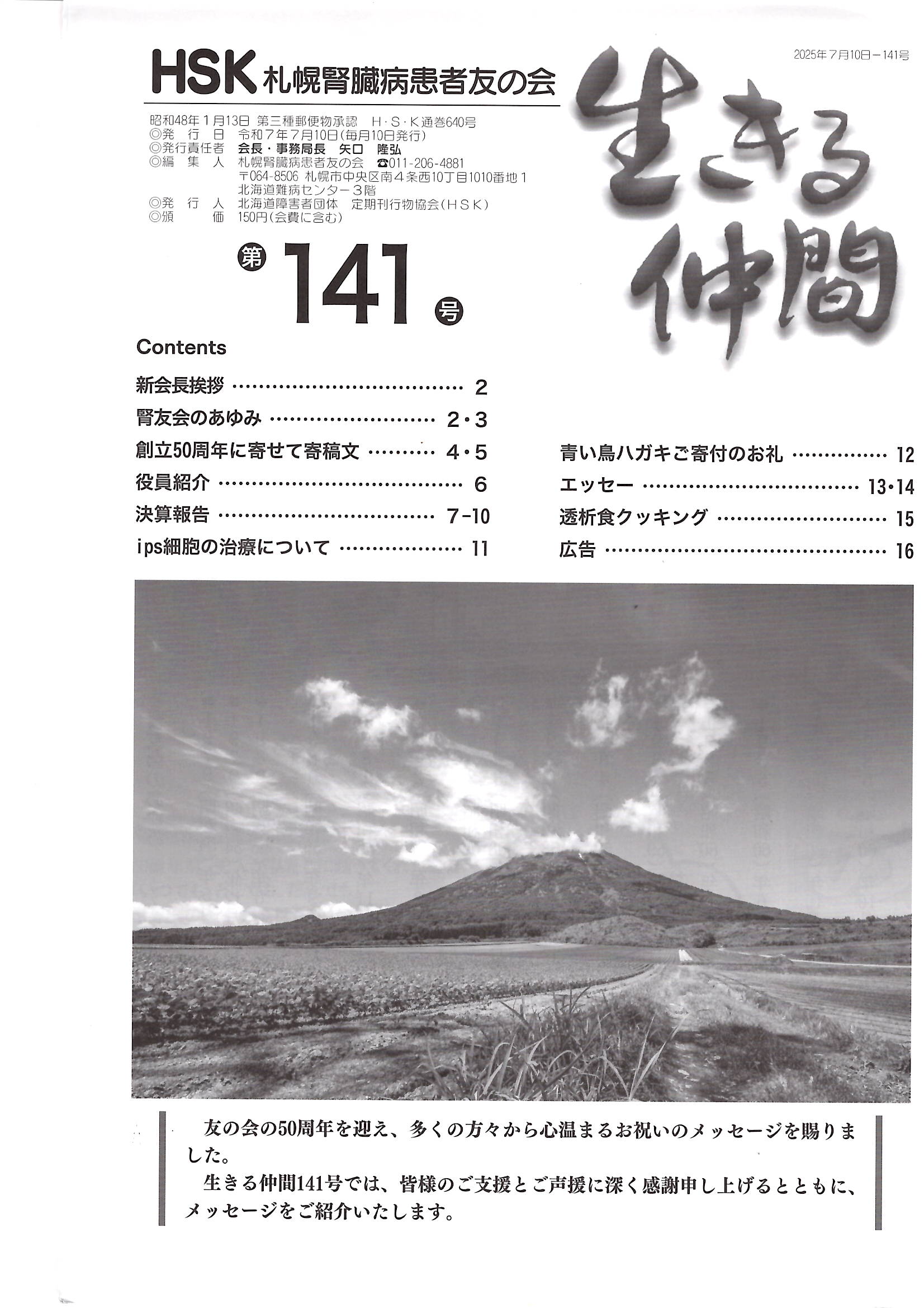 ●機関紙「生きる仲間」は年2回の発行です。会員さんには配布済みなのでご拝読ください。ご意見などありましたらお寄せ下さい。